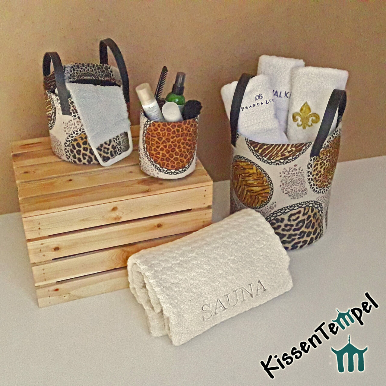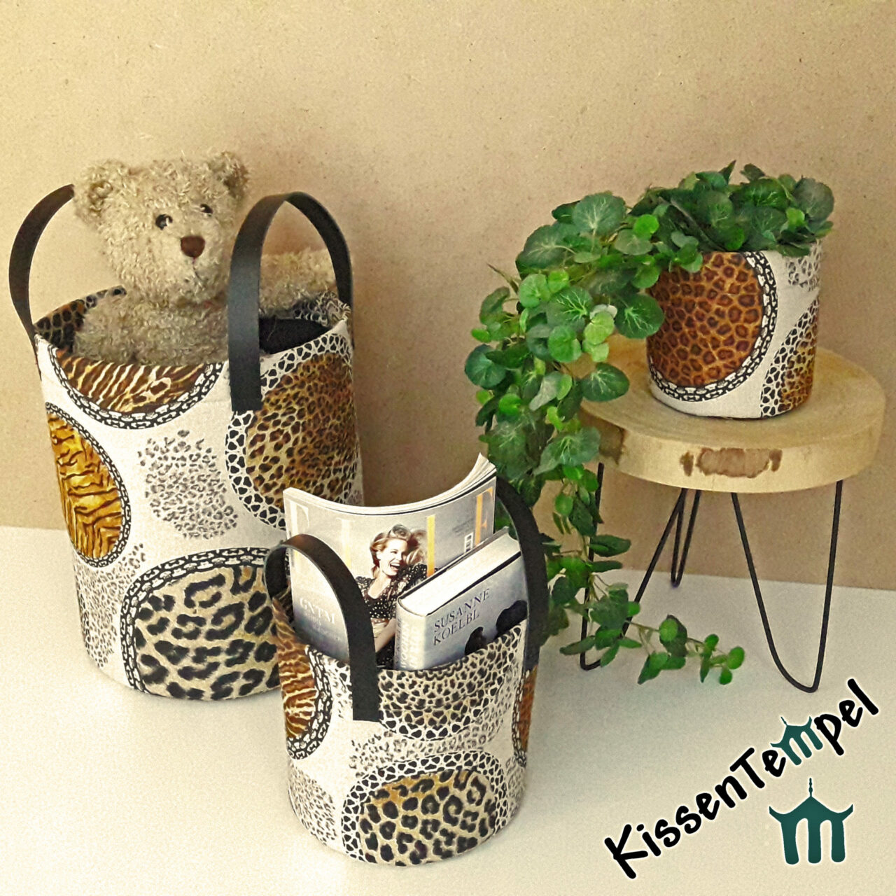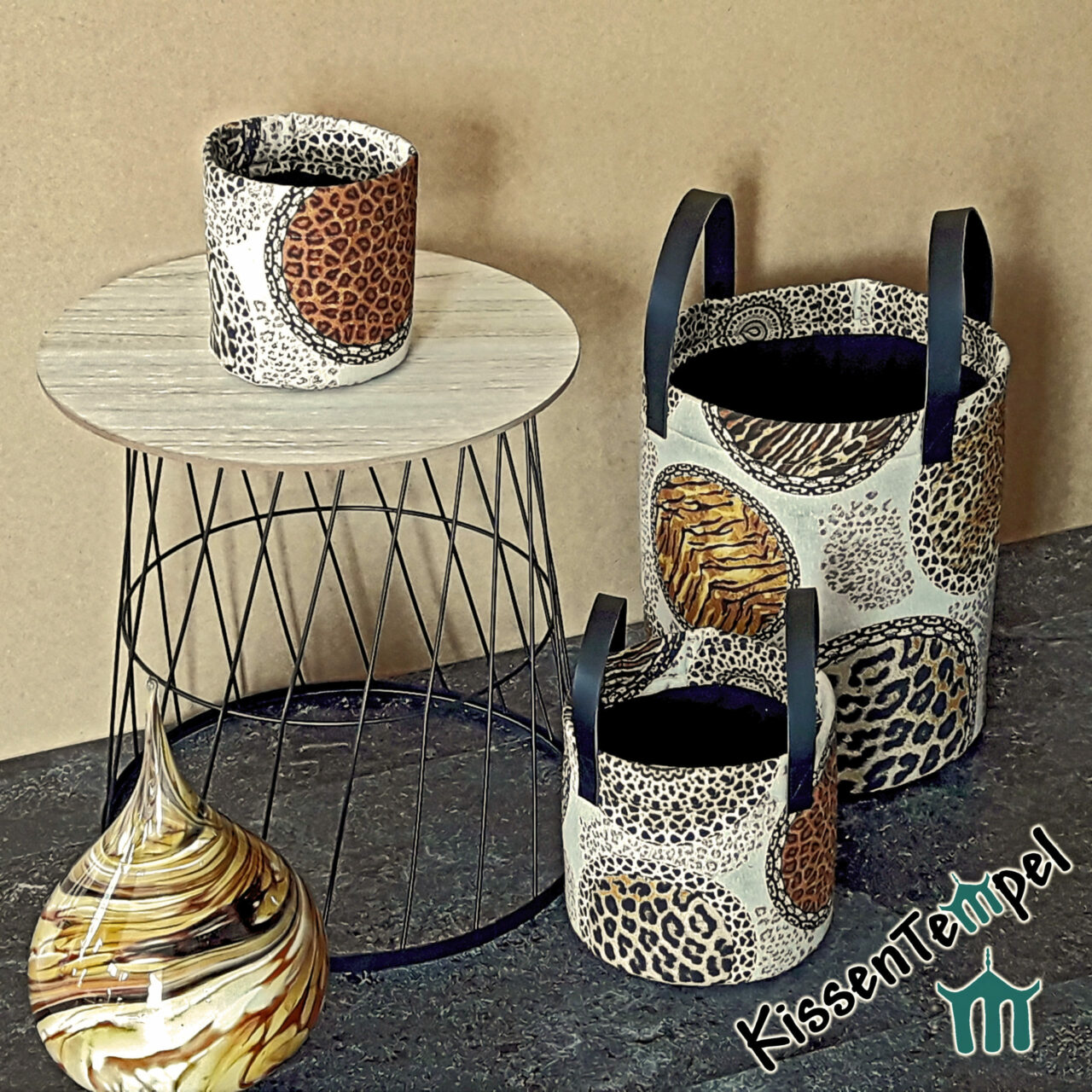 Handgenähter Aufbewahrungskorb | Utensilo „Mandala Africa“ Stabilität durch spezielles Vlies, mit Lederhenkel