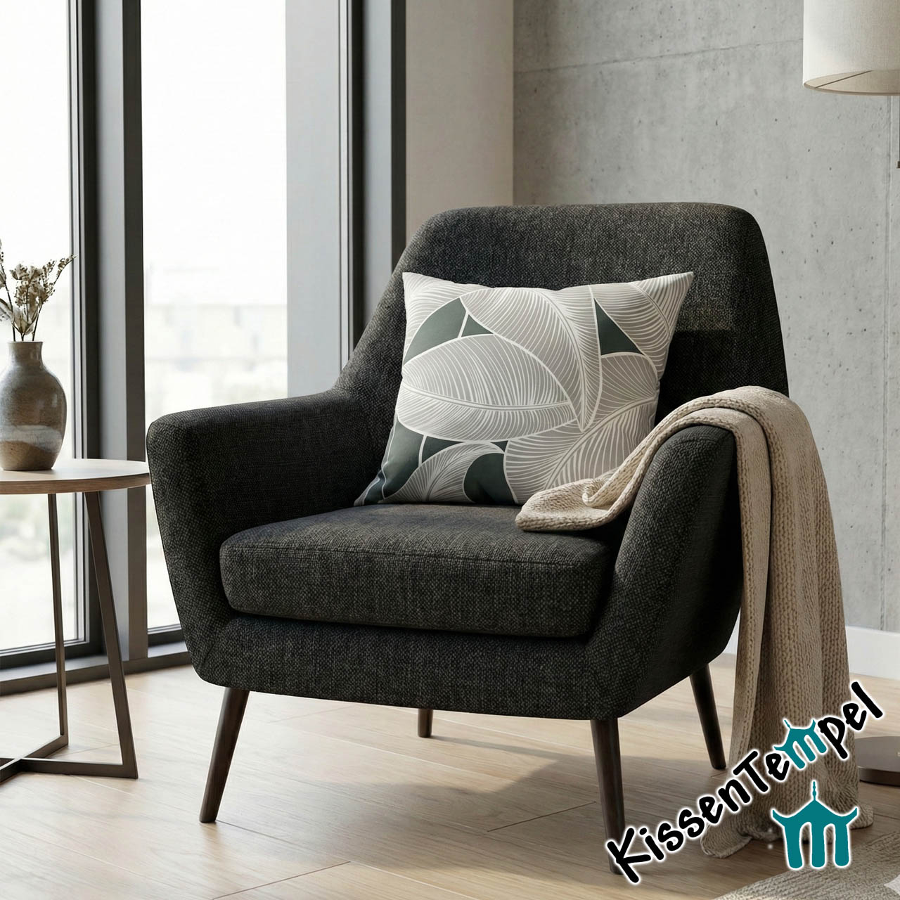 Zeitloses Design: Das monochrome Blättermuster passt hervorragend zu modernen Einrichtungsstilen, dem Skandi-Look oder als spannender Kontrast zu hellen Möbeln.