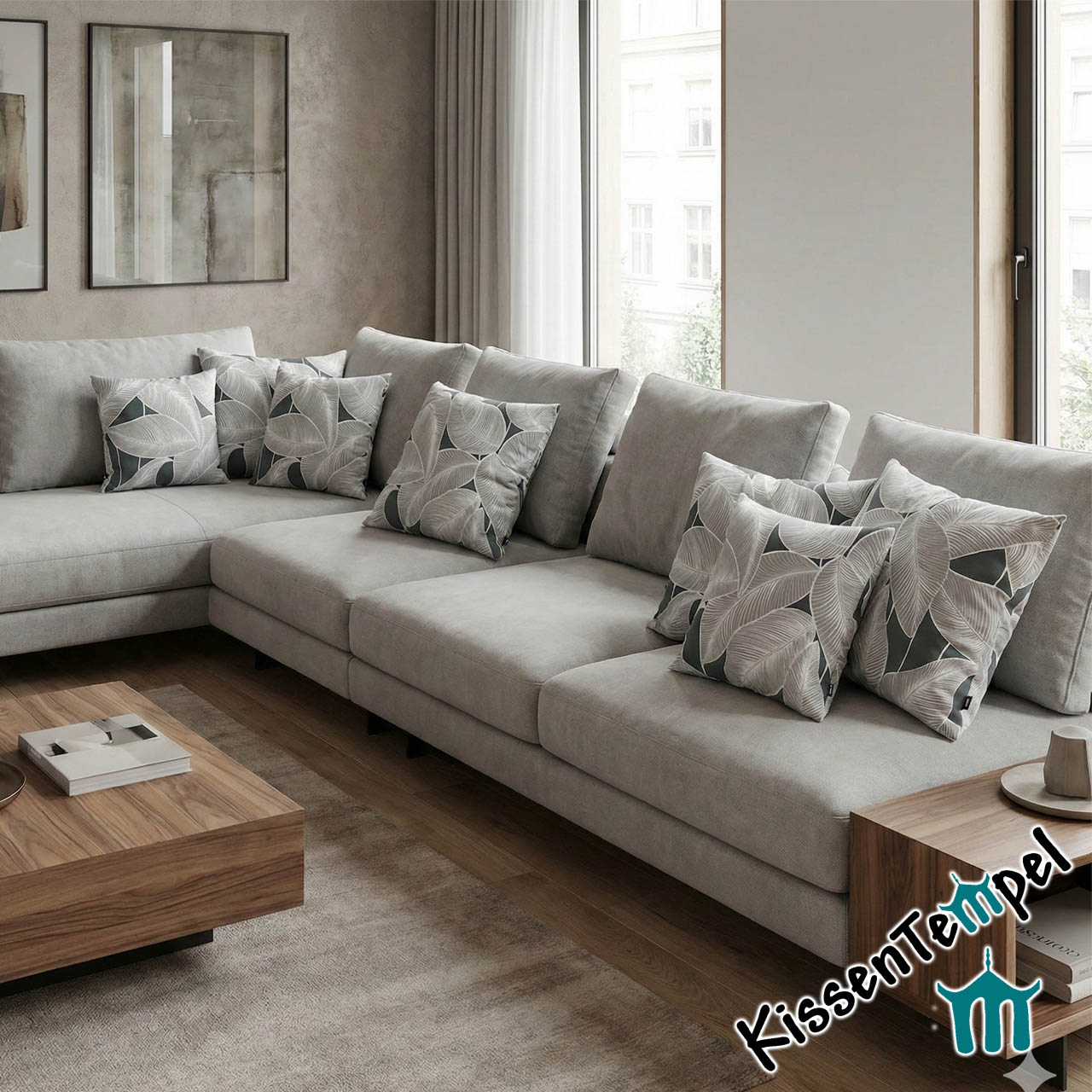 Mit unserem Kissenbezug „Eden“ verleihst du deinem Zuhause einen Hauch von Natur, ohne dass es dabei zu bunt wird. Das großflächige Blättermotiv besticht durch seine moderne Zurückhaltung: Statt klassischem Grün setzen wir hier auf einen stilvollen Kontrast aus Anthrazit und feinen Grau- und Weißnuancen.