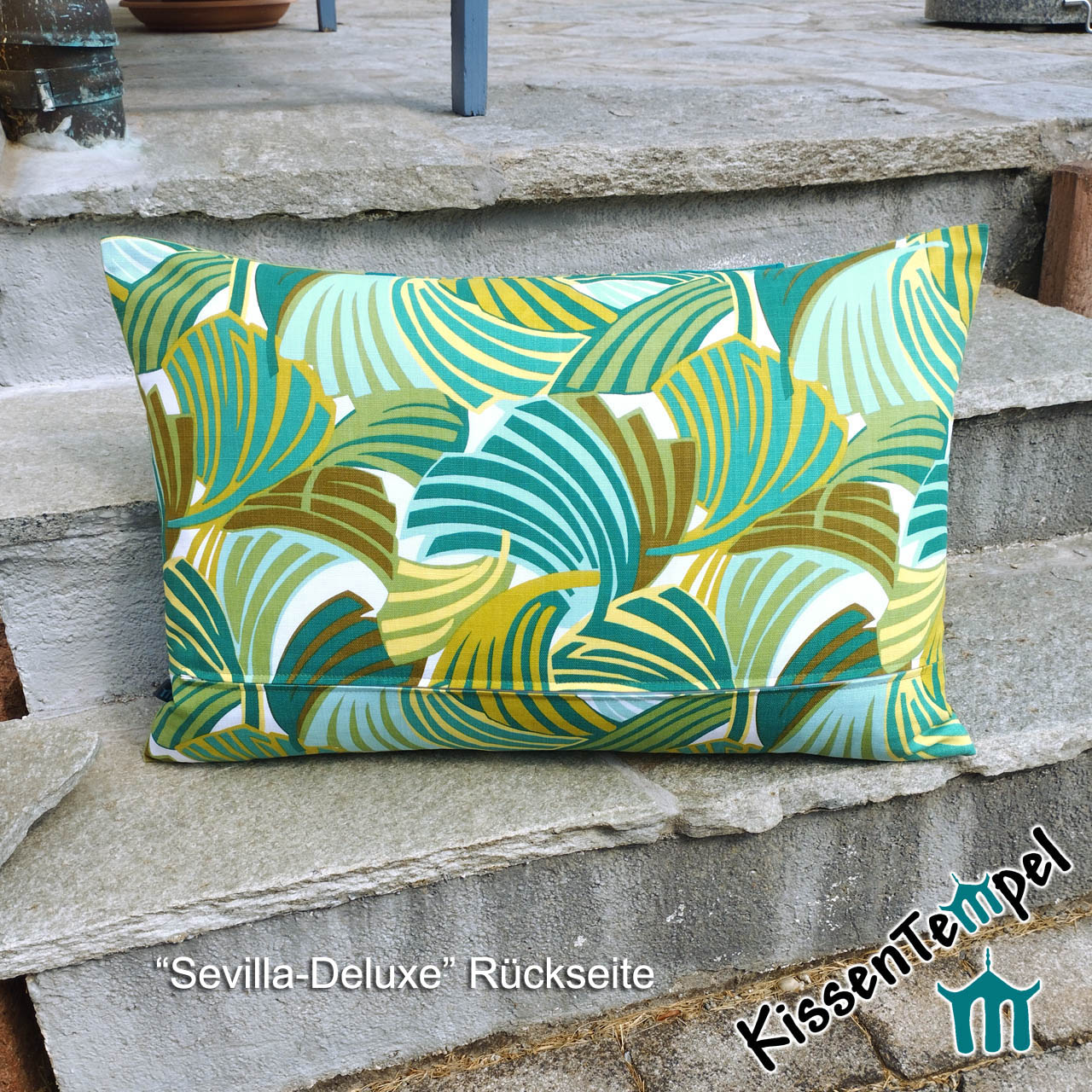 Das Kissen „Sevilla-Deluxe“ kann wunderbar kombiniert werden mit den Kissen „Sevilla“ und „Lotte“ in den Farben Pistazie und Smaragd.