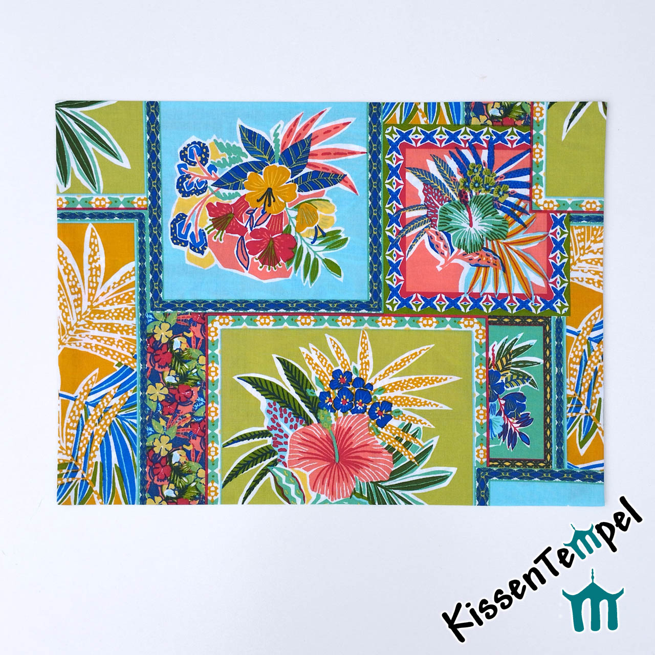 - Motiv: tropische Blumen und Pflanzen in Patchwork-Design