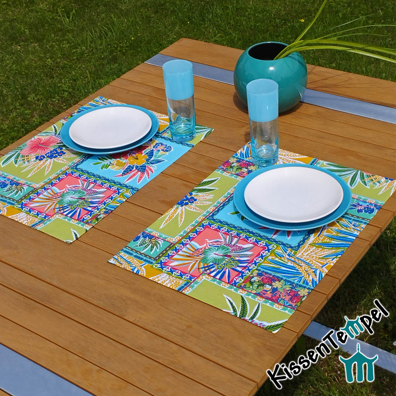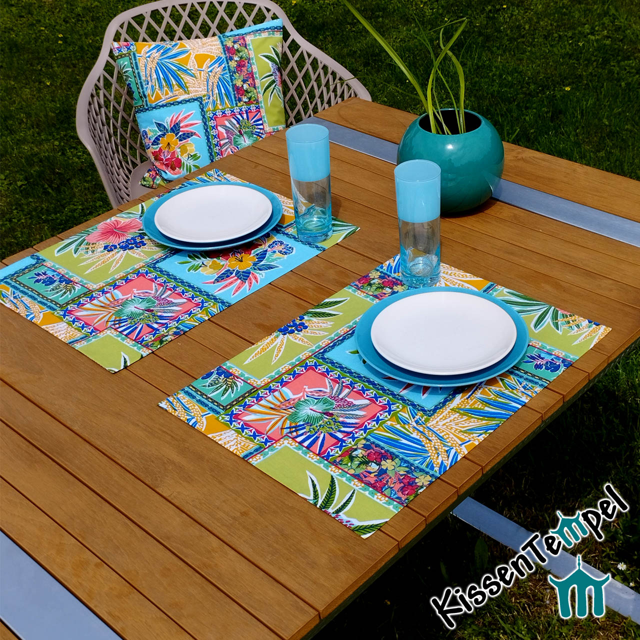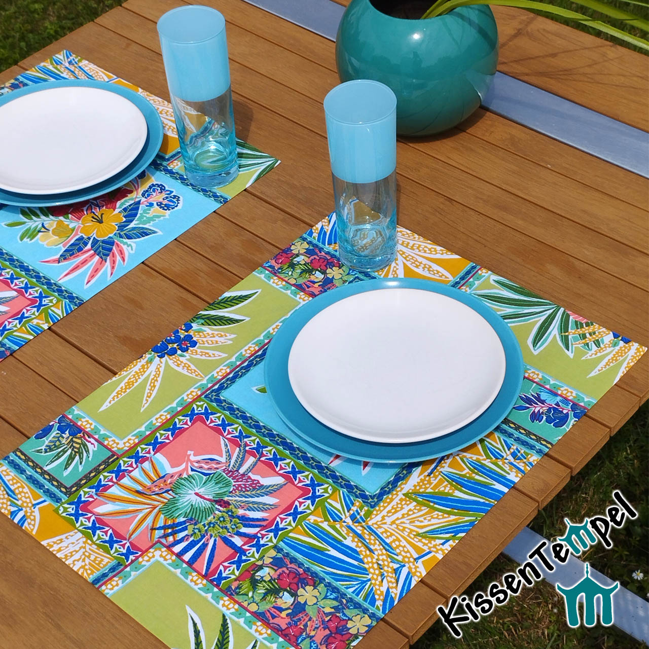Exotisches Tischset „Hawaii“ mit tropischen Blumen und Pflanzen