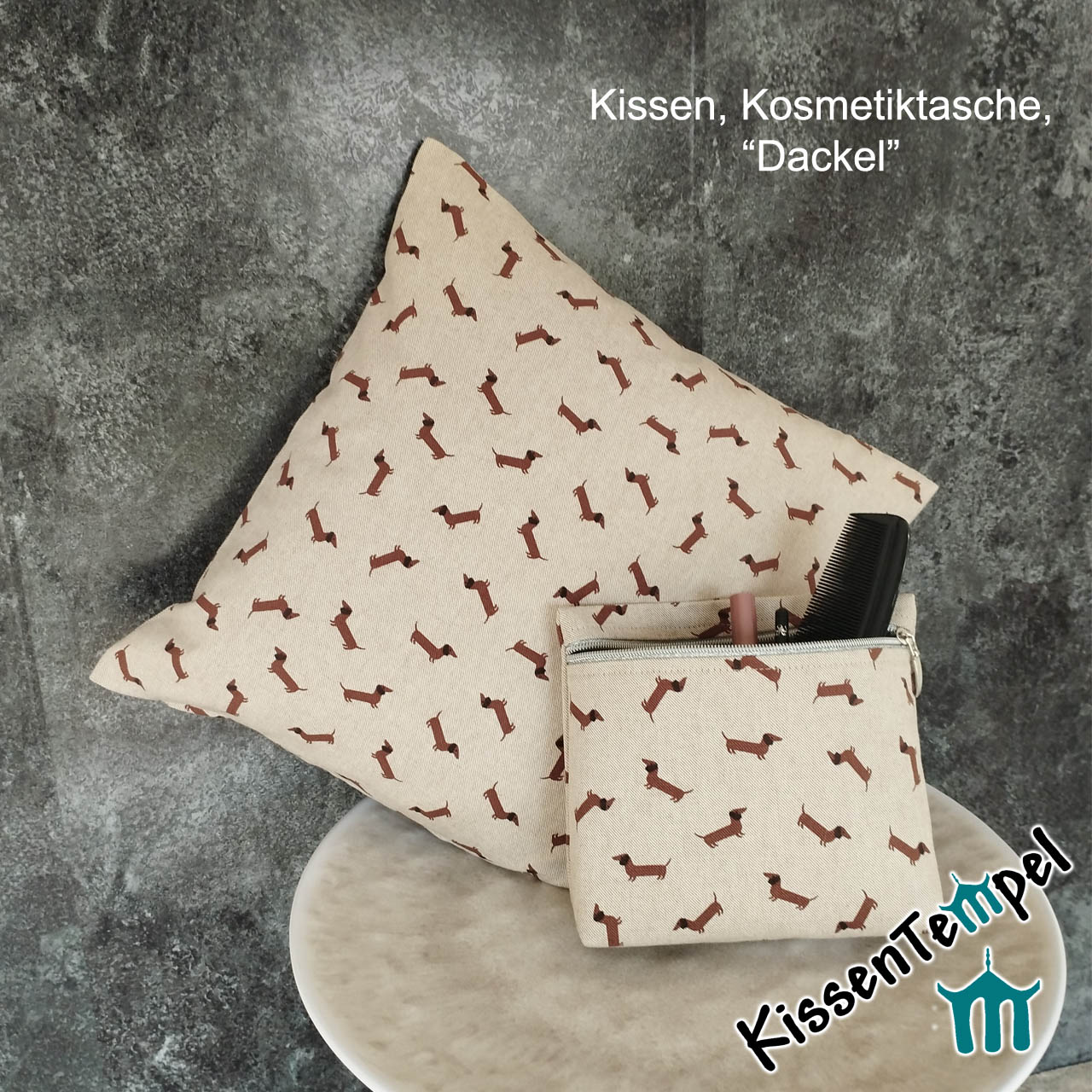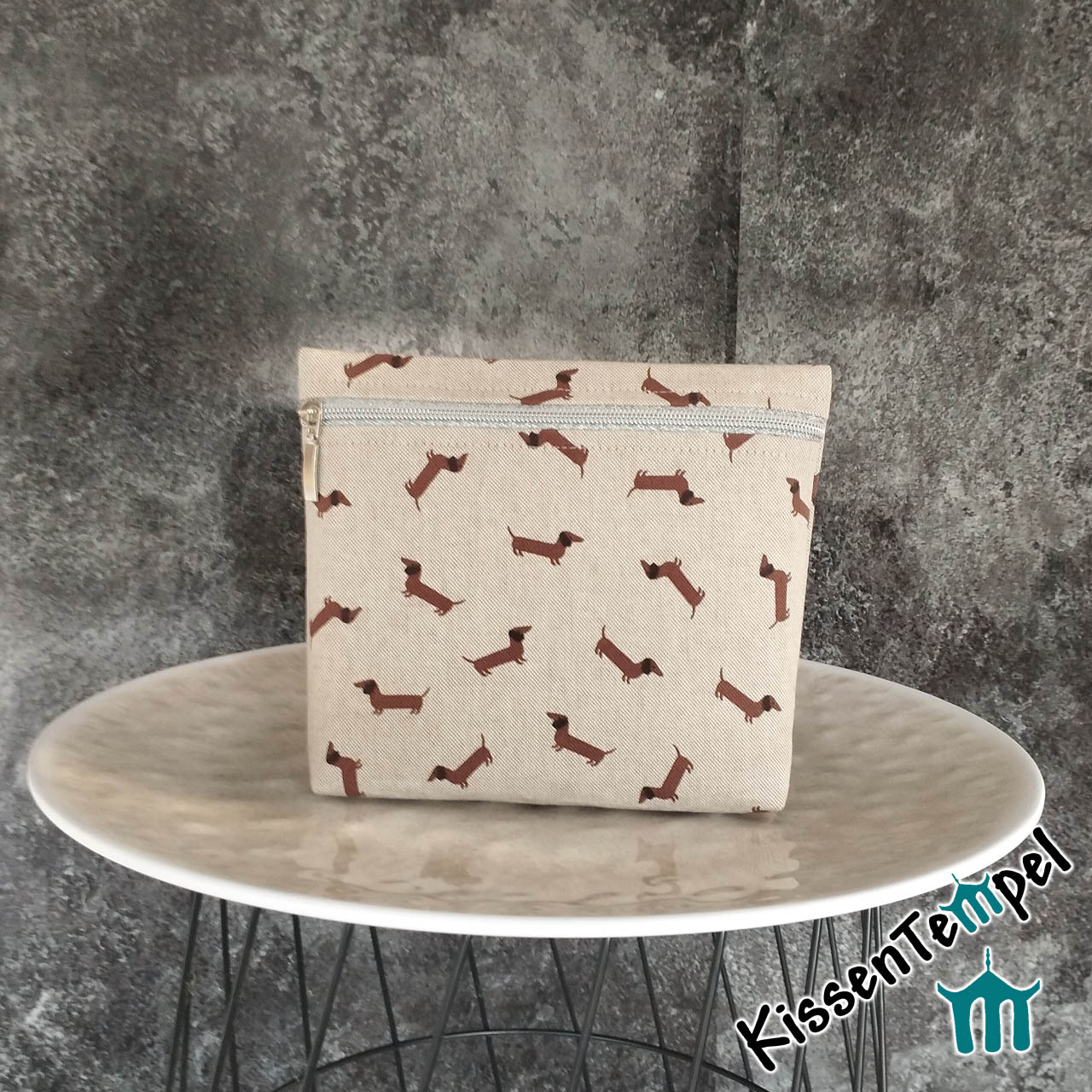 Handgenähte KosmetikTasche „Dackel“ mit niedlichen Dackelmotiven