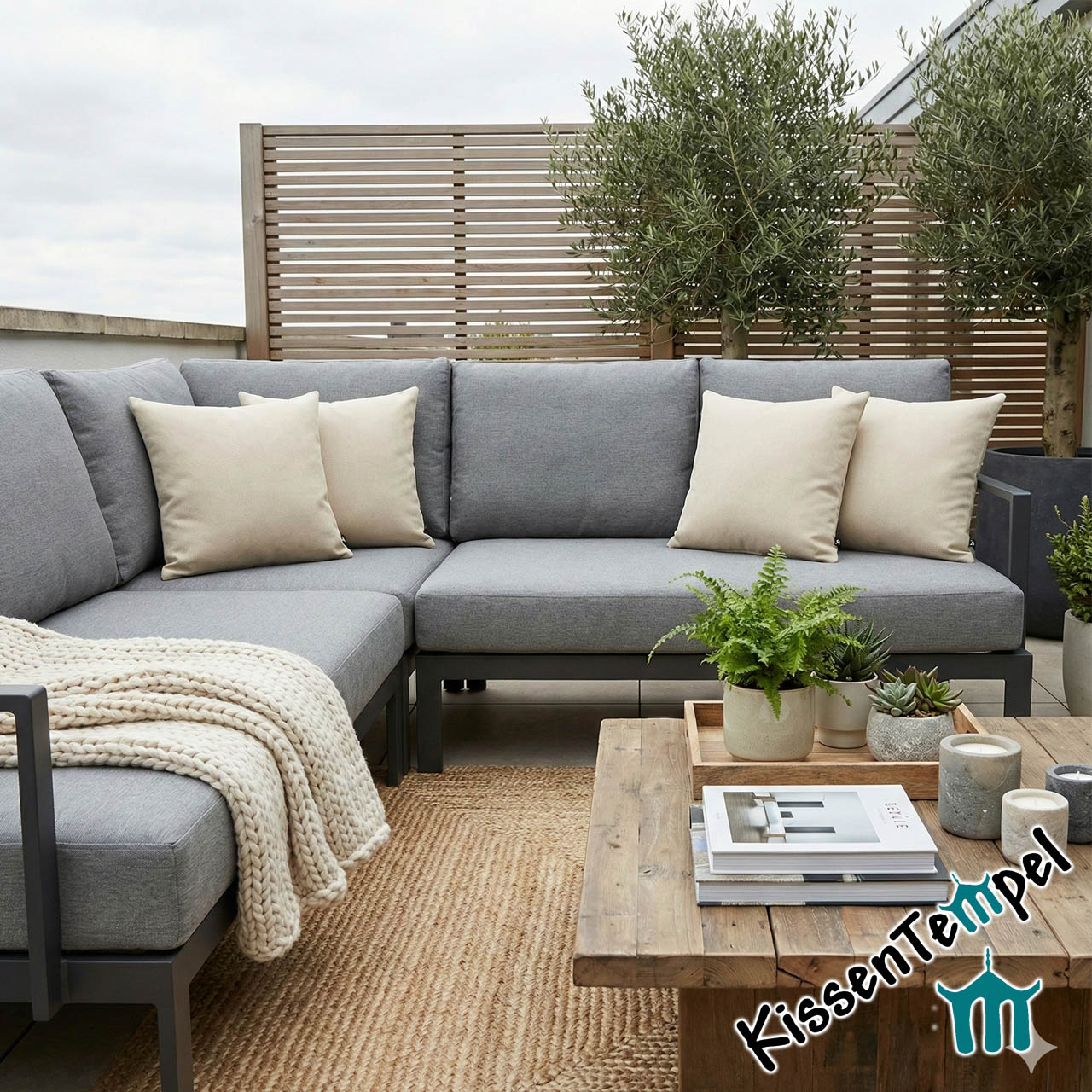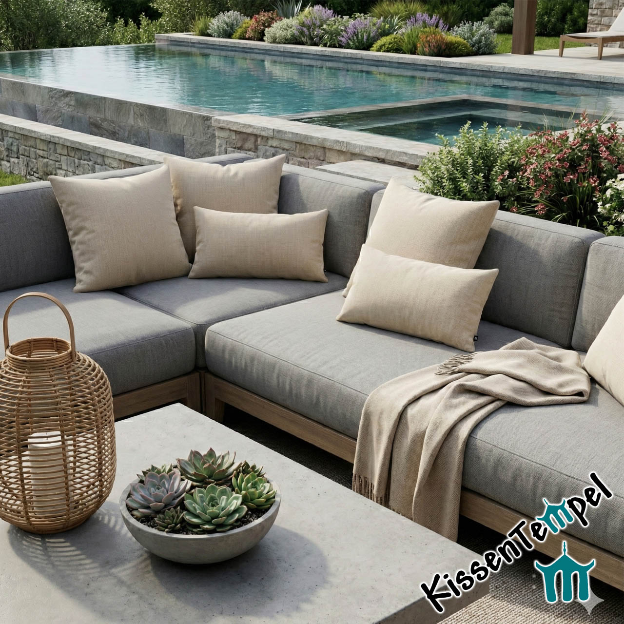 Ob auf deinem modernen Loungesessel oder als gemütlicher Akzent auf dem Balkon – dieses Kissen verbindet Eleganz mit absoluter Funktionalität.