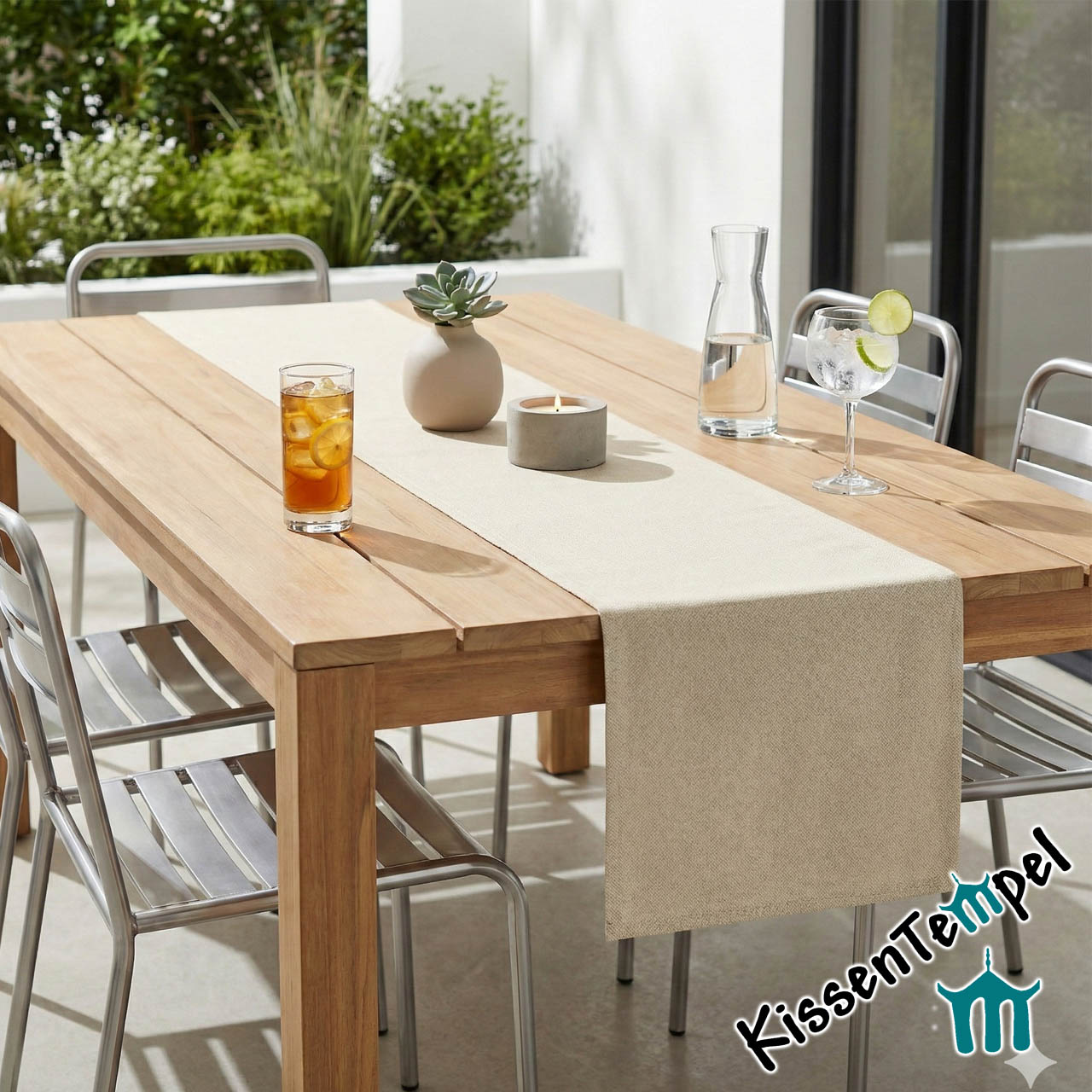 Mit dem Tischläufer „Saint Tropez“ setzt du ein elegantes Statement auf Deiner Terrassen-Lounge. Genau wie unser passendes Kissen besticht dieser Läufer durch seine besonders feine Fischgrat-Webung. Diese Struktur verleiht dem Stoff eine lebendige, hochwertige Optik, die man sonst nur von edlen Indoor-Textilien kennt.
